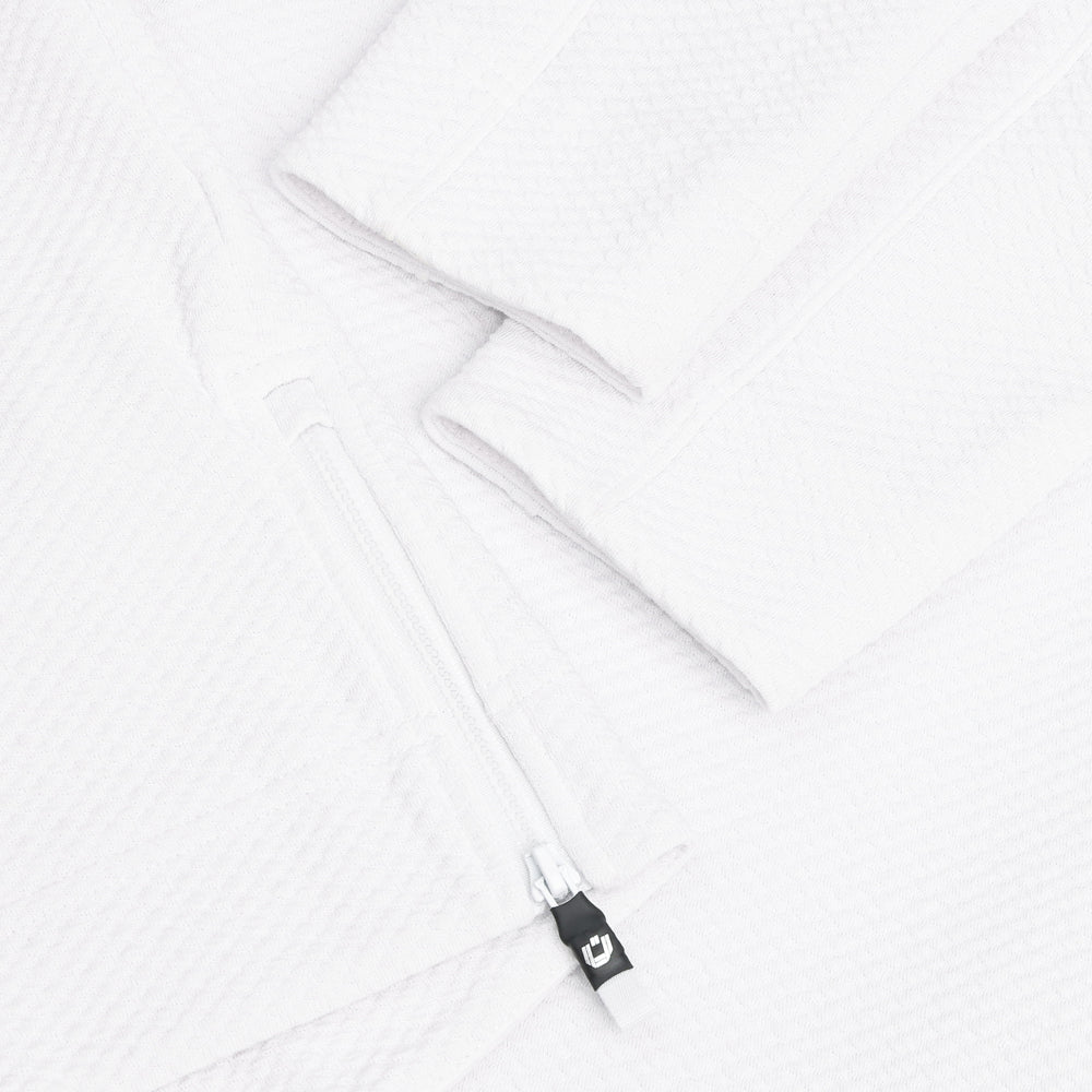 Comfort and warmth combined with performance fabric! The fabric offers stretch for comfortable wear and movement with ease, machine wash ability with resistance against shrinking and wrinkles, as well as resistance against stains. Design details include a quarter zip through stand collar, a pocket at the sleeve, side seam pockets and a textured finish to elevate the look.